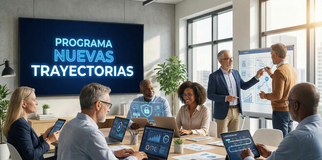 Nuevas Trayectorias es un programa de reinvención profesional dirigido a personas del sector tecnológico, especialmente profesionales mayores de 50 años que desean mantenerse vigentes y competitivos en un mercado laboral transformado por la digitalización y la velocidad del cambio. A través de, una metodología práctica, el programa ayuda a identificar habilidades transferibles, fortalecer una marca personal auténtica, explorar tendencias emergentes y definir una hoja de ruta clara hacia áreas de alto crecimiento como ciberseguridad, análisis de datos o economía digital e Inteligencia Artificial.El proceso combina sesiones en vivo, ejercicios aplicados y recursos estructurados para ejecutar la transición de manera estratégica y sostenible. Los participantes desarrollan un plan de acción personalizado, aumentan su presencia profesional en entornos digitales y pueden acceder a herramientas adicionales como la ruta hacia la certificación internacional CC de ISC2 (opcional), facilitando su reposicionamiento laboral en sectores con alta demanda y alineados con la nueva longevidad.